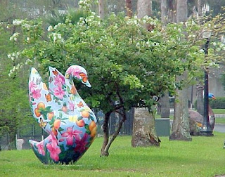 Now when I turn off HWY 60 and head down on Florida Ave I feel some release. As I start getting closer into the downtown area you can see the large swan's they have made that are sited around the down town area. And let me tell you the are wonderful. With their colors and different designs. Each are different colored. Then comes the road I turn on and I can see it the lake. So beautiful and smooth as glass.
